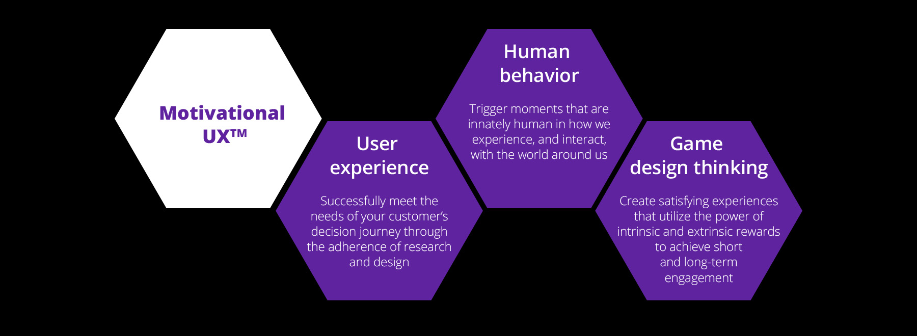 Motivational UX is a customer-centric approach to innovation that applies decades of multidisciplinary research (behavioral psychology, user experience and game-design thinking) to business-focused design solutions, giving you the strategic edge over your competition.